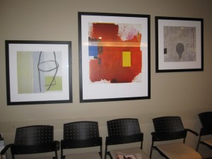 I had to pick up a friend recently from a medical clinic where she was having a ‘procedure’ done and was not permitted to drive afterwards. So, I had to sit in the waiting room for a while, waiting (and waiting). The waiting room was large enough that all of us ‘drivers’ were not sitting side by side and practically on top of each other. The chairs were placed in a manner that enabled us to look in different directions so we were not staring at each other. There was no window that looked outside but there was a flat screen television that allowed us to have some focal point to rest our eyes upon. Of course there were many magazines and fortunately they were current issues. Nothing worse than 2 year old magazines where you are reading about Christmas in June! The chairs were clean too – that scores big points with me. As I looked around this office/waiting room I could tell that a designer had designed this space. The wall colour choice had been chosen by a professional not by the ‘builder’. The chairs were coordinated with the paint and the carpet. There was ambient light so there was a nice calm feel to the room, not glaring overhead fluorescent lighting. And the thing that caught my attention the most was the art on the wall. It was not some art that had been cast-offs and brought from home. (I am sure you have been in a Doctor’s office with art like that!) These pieces had been specifically chosen for this space. But the thing I found most interesting was how the art had been hung on the wall. The art was hung at the correct height (art is often hung too high) with appropriate space between the pieces (another common mistake) but I liked how someone had thought to stagger the art. It gave me something while sitting here and waiting to reflect upon. Interesting style. I liked that it was ‘leftward’ of ordinary.