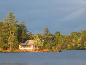 This weekend I had the good fortune of being able to ‘plunk’ myself in a chair on the dock at the cottage and just watch the world go by. To just sit by myself and gaze out at the lake and listen, watch and ponder. To listen to the call of loons, watch the boats and water skiers go by and think about something, anything or nothing at all. It is a rare moment when we truly can zone out and leave our busy lives turned off for a moment. (Actually there is no cell phone or Internet coverage available here!) From this comfortable perch I look towards a cottage on an island, one of the sights that my eyes always come to rest upon. For years I have admired this cottage from afar with its nostalgic laid-back appearance. The cottage was built almost 70 years ago and is still occupied by the original homesteader. It was erected atop a huge rock and seems to just hug the water’s edge. I have never been inside this charming cottage but the ‘decorator’ in me often wonders what the interior would look like? But that I think is the biggest appeal of all, of not knowing but continually pondering and coming up with all kinds of different décor ideas. My favourite design would be of weathered woods with natural fibres and a soft muted palette. Although the ‘white cabana’ feel could be a great style also. Maybe it is more of a nautical feel with stripes of blue and white and accents in red. Whatever it is I am happy in never knowing because as a wise man once said “Discovery consists of looking at the same thing as everyone else and seeing something different.”