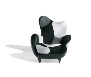 Alessandra black and white upholstered armchair, Los Muebles Amorosos, (Spanish for loving furniture) designed by Javier Mariscal for Moroso of Italy.