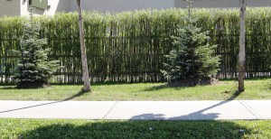 The fence in my backyard has needed replacing for some time but for two reasons it is still standing. One – the fence is covered with trees and plantings so you really do not see much of the fence (out of sight, out of mind) and two – I have not come up with an interesting design for the new fence. Presently the cedar fence which is ~50 years old has the fence boards running horizontally which I do like but unfortunately it is not high enough for privacy. In previous homes I have built fences with vertical fence boards and lattice-work on top but this time I want something different. I want something with a unique design, something that is more than just utilitarian. I have created a ‘Fence Design’ file and slowly have been adding to it. Here are 2 designs that I thought were interesting. I am not sure if they would work for my backyard but one never knows where inspiration may come from. The first design is a fence that I saw that divides two neighbours at the front of their homes. Its design is a ‘gentler’ way to block out a neighbours vehicle sitting on the front yard parking pad rather than having a big wood fence that indicates ‘Hatfield and McCoy’s’ scenario. Dried sticks are grouped together and placed into a wooden base. The sticks sway in the wind giving the fence a gentle appeal.