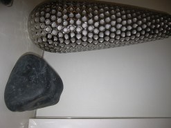 A friend of mine vacationed this past summer on Georgian Bay, Ontario with her family. Each summer they tour around the lake in their boat and set up camp on one of the many 30,000 islands in Georgian Bay. The marvel of the ‘sixth Great Lake’ is the beauty to behold in the windswept pines, the endless beaches, the majestic towering cliffs and the granite rock formations. The rugged beauty of the area inspired the artists of the Group of Seven to paint the Canadian landscape and thus started the first major Canadian national art movement. Part of Georgian Bay sits on the southern edge of the Canadian Shield of granite bedrock exposed by glaciers at the end of the last ice age approximately 11,000 years ago. While hiking across Beckwith Island my friend found a rock, probably granite that she immediately fell in love with and decided to carry it for the rest of the hike. She even had to swim with the rock out to where the boat was anchored. Although the rock was grapefruit-sized, it became very heavy to carry after a few hours. But determined she was. The rock made its way back to the city and took up residence on her fireplace mantle. The colour of the rock, the sheen, the organic-ness of the rock became the inspiration for my friend’s living room makeover. Each time there was a question or query as to what her direction or style was my friend looked to the rock. In came a new deep grey sectional, a ‘greige’ shag area rug, and large matted, white framed prints for over the fireplace, new white drum shades on the black lamps, and a natural stone-topped cocktail table. A white leather chair is on order and the hunt for a mid-century wood chair to place in front of the fireplace has begun. The end wall in the dining room was painted in a deep grey as a stunning feature wall. Accessories in silver and glass have been added also. The room looks fabulous. My friend is thrilled with her results. And all this from a rock!