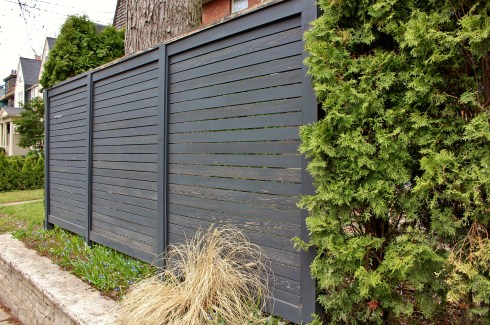 Last fall I wrote about my fence design dilemma. https://modmissy.com/2011/10/14/my-fence-design-dilemma. Well the dilemma is still ongoing as I have not yet decided on the design of the fence that desperately needs replacing in my backyard. Last weekend I decided to hang out in the city or as I like to call it I was a “tourist in Toronto” and took the opportunity to visit many different neighborhoods. No sense travelling to other world cities if I don’t know my own city! While walking through various residential areas I made a point of looking for interesting fence designs. This is a great time of year to do some research as the greenery that will soon hide fences has not yet started to grow. I noticed a design theme emerging with many of the style of fences that I came across – horizontal fence boards. With my camera in hand I took photos of my findings.