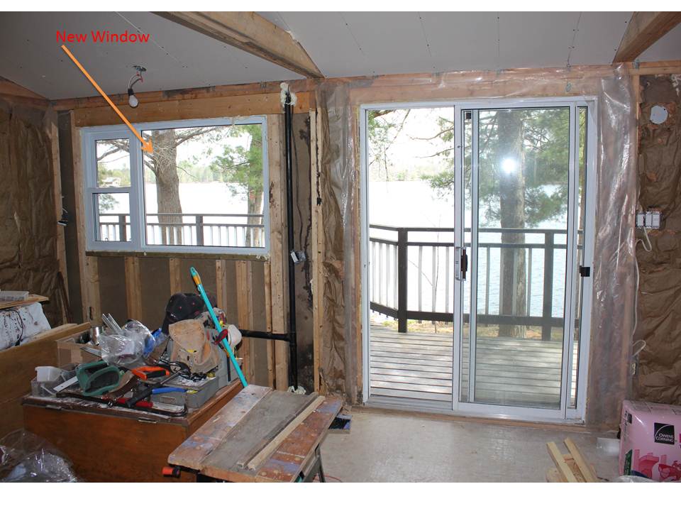 If I haven’t said it before, I’ll say it now “I love windows”!! Especially new and larger ones. During our recent cottage renovation the decision to remove the upper kitchen cabinets allowed for the kitchen window to get doubled in size. This enlarged window now makes a dark corner much brighter and gives an even better view to the lake.