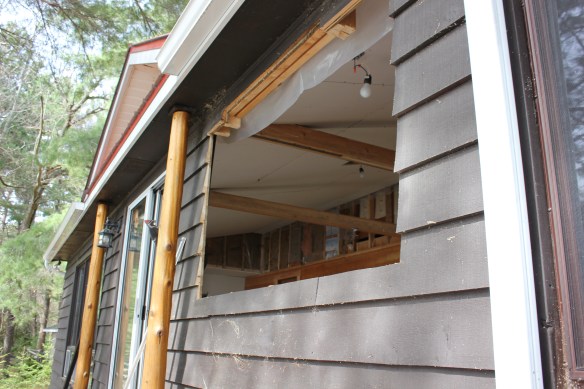 The 2 beams, necessary to hold the roof up will be clad in rough-hewn pine to give the appearance of logs for a more natural look.