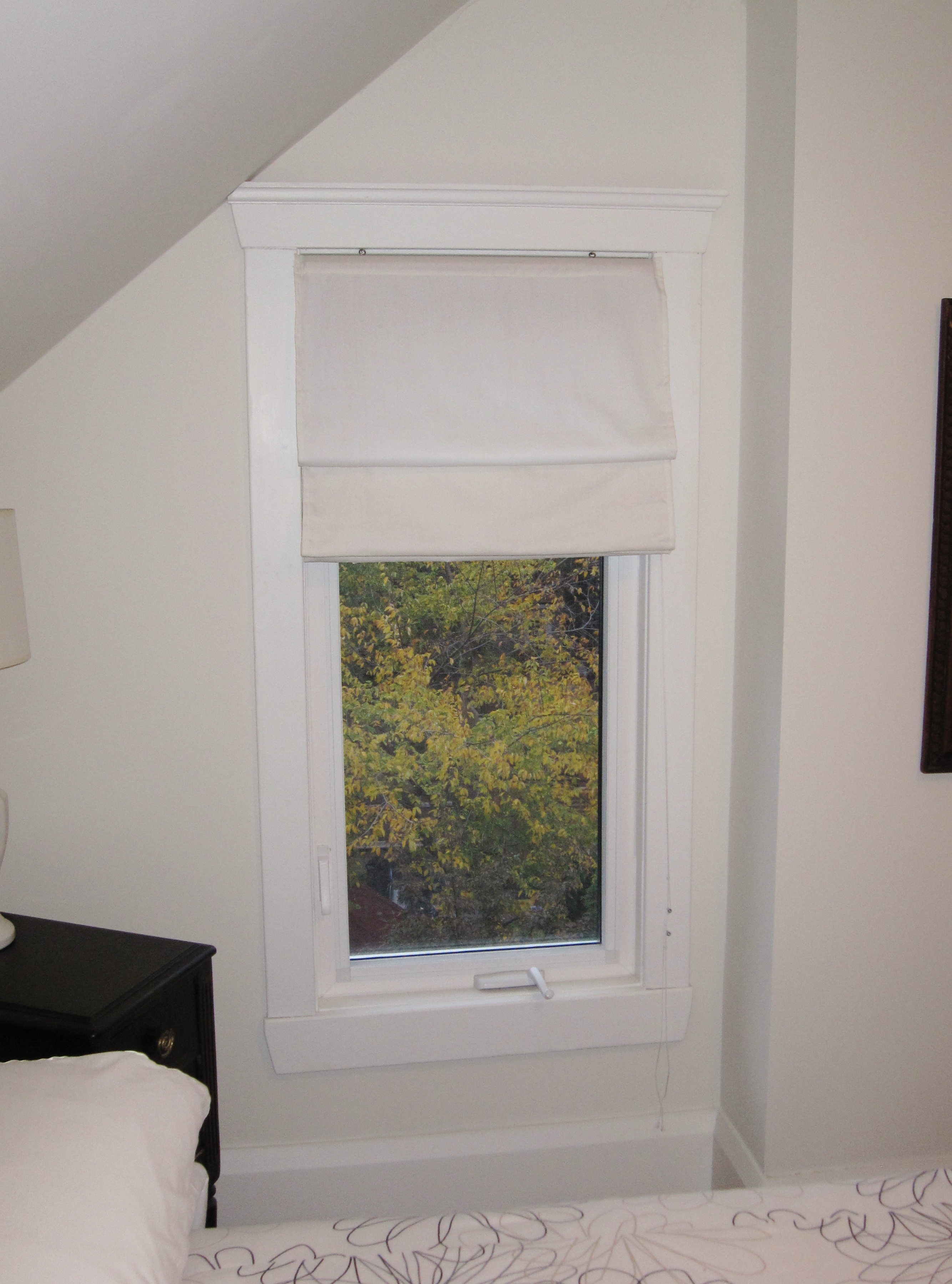 But here’s an interesting story. One day I pull up to the car wash and while waiting for my turn in line I decide to tidy up the inside of my car. Just as I am about to throw my garbage into the pail provided for customers guess what I see standing up in the garbage pail? An IKEA Iris Roman Blind still in the package. Brand new never been used and exactly the size I was looking for!! What are the chances?